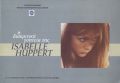 Κατάλογος που εκδόθηκε με την ευκαιρία του αφιερώματος στην κορυφαία γαλλίδα ηθοποιό Isabelle Huppert από το Φεστιβάλ Κινηματογράφου Θεσσαλονίκης. Ο κατάλογος περιλαμβάνει κείμενα για τη ζωή και την καριέρα της ηθοποιού, φωτογραφίες, πρόγραμμα, ζενερίκ και σχόλια για τις ταινίες που περιλαμβάνονταν στο αφιέρωμα.