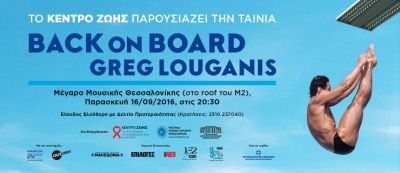 Μια ζωή γεμάτη διακρίσεις, συναρπαστικές στιγμές αλλά και πολλές προκλήσεις: η ζωή του διάσημου Ολυμπιονίκη Γκρεγκ Λουγκάνις ξετυλίγεται στο ντοκιμαντέρ Back on Board: Greg Louganis της Cheryl Furjanic, το οποίο παρουσιάζεται σε ειδική προβολή την Παρασκευή 16 Σεπτεμβρίου 2016, στις 20:30, στο roof του Μ2 του Μεγάρου Μουσικής Θεσσαλονίκης.