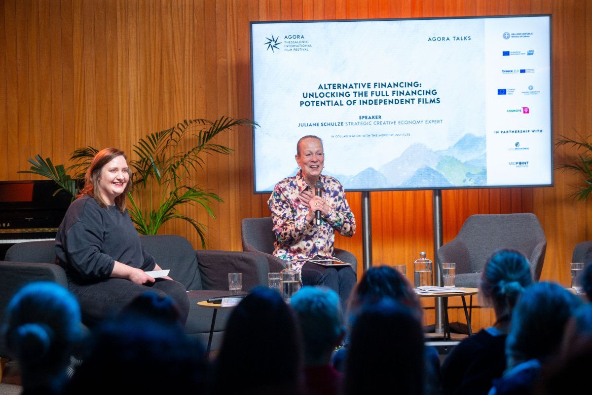 H συζήτηση «Εναλλακτική χρηματοδότηση: Πώς να αξιοποιήσετε πλήρως τις δυνατότητες χρηματοδότησης των ανεξάρτητων ταινιών» πραγματοποιήθηκε την Τρίτη 4 Νοεμβρίου, στο πλαίσιο των Agora Talks του 66ου ΦΚΘ. Τον λόγο πήρε αρχικά ο Μάνατζερ της Αγοράς Θάνος Σταυρόπουλος, ο οποίος καλωσόρισε θερμά τις ομιλήτριες και το κοινό, ευχαριστώντας τον Δήμο Θεσσαλονίκης για τη στήριξη του και το Ινστιτούτο MIDPOINT για τη γόνιμη συνεργασία. Στο πάνελ συμμετείχαν οι Sona Morgenthalova, Συντονίστρια Προγράμματος στο Ινστιτούτο MIDPOINT, και η Juliane Schulze, Στρατηγικός Ειδικός σε ζητήματα Δημιουργικής Οικονομίας.