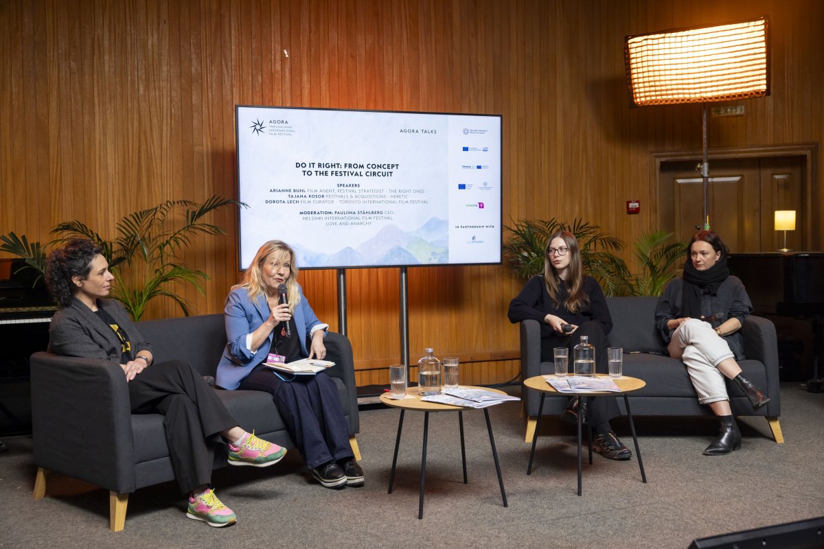 Η συζήτηση «Κάντε το σωστά: Από την ιδέα μέχρι το φεστιβάλ» διεξήχθη την Τετάρτη 5 Νοεμβρίου, στο πλαίσιο των Agora Talks του 66ου ΦΚΘ. Ο Θάνος Σταυρόπουλος, Μάνατζερ της Αγοράς, καλωσόρισε θερμά το κοινό και ευχαρίστησε τον Δήμο Θεσσαλονίκης για τη φιλοξενία των Agora Talks στο Κέντρο Μουσικής Θεσσαλονίκης, συστήνοντας παράλληλα τις ομιλήτριες του πάνελ: την Arianne Buhl (Film Agent / Festival Strategist - The Right Ones), την Tajana Kosor (Festivals & Acquisitions - Heretic) και την Dorota Lech (Film Curator -Toronto International Film Festival). Τη συζήτηση συντόνισε η Pauliina Ståhlberg, CEO στο Helsinki International Film Festival – Love and Anarchy.