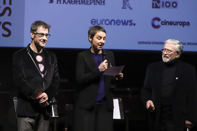 The General Director, Elise Jalladeau, and the Director of the Thessaloniki International Film Festival, Orestis Andreadakis, took the stage together with TIFF Board of Directors President and cinematographer Yorgos Arvanitis. Mrs Jalladeau and Mr Andreadakis welcomed the audience, noting that there would be no speeches and greetings that evening, just awards, and thanked the supporters, the sponsors, the wonderful staff, the amazing volunteers, the audience in Thessaloniki and of course the TDF’s instigator and founder, Dimitri Eipides.
