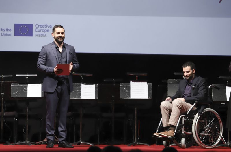 The event presenters conveyed to the audience the thanks of the directors Ioanna Neofytou and Dimitris Stamatis on behalf of their co-production company Story Doc and the International Organization for Migration. On his part, receiving the award, the film director Stratis Chatzielenoudas thanked the Thessaloniki Festival, the film crew and the sponsors who supported this attempt. He also conveyed to the audience the message of Leonidas, the film’s main character, who despite his paraplegia attempts to climb Mount Olympos. “Thanks to all those who supported me from day one of my accident, all those who believed in me and each one in their own way helped me make my dream come true. Because it is not bad to dream; what is bad is not make your dreams come true. I dedicate this award to all those who stand by me and those who do not give up hope”. On his part, the film director Talal Derki sent a thank you video message which was screened at the ceremony. Speaking in Greek, Mr Derki said he was sorry for not being able to come to Thessaloniki, and thanked for the distinction, noting: “The TDF feels like home to me, I attend it for several years now and consider it one of the best. I wish I will be able to come next year with a more pleasant film”.