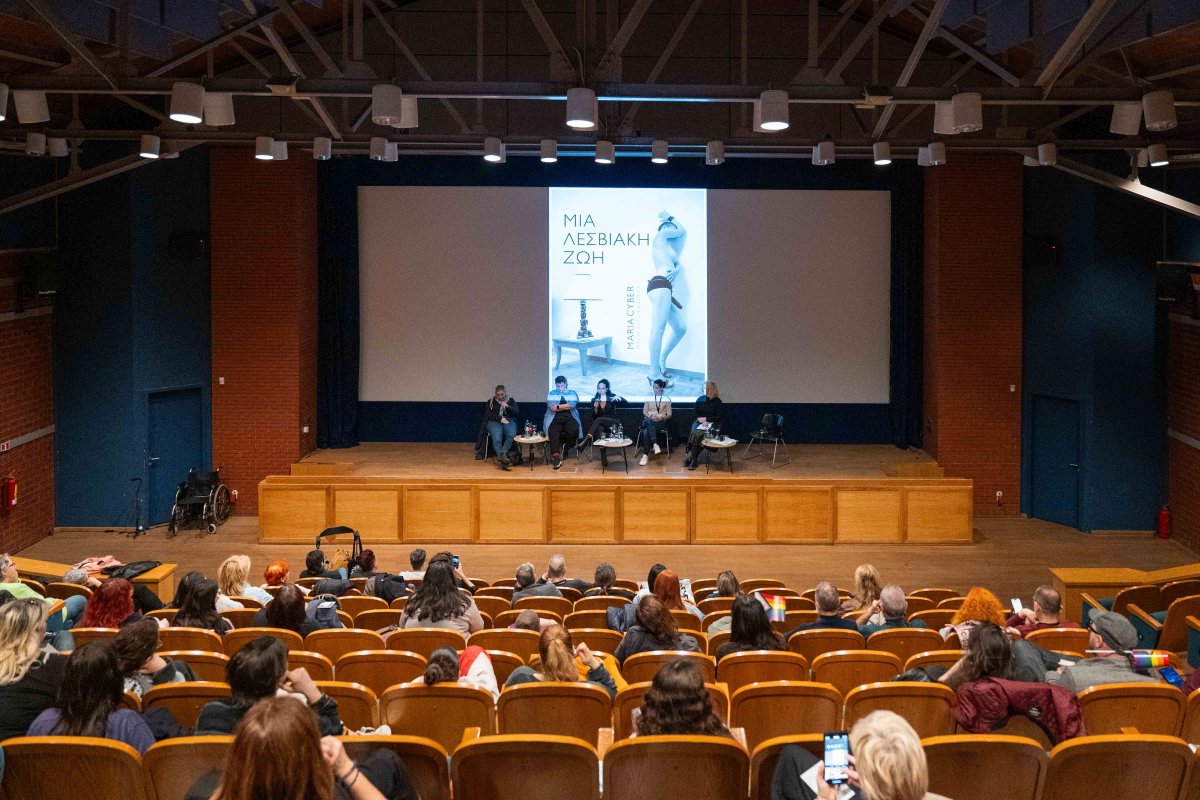 Maria Cyber’s book, A Lesbian Life (To Rodakio publications), was presented on Saturday, March 16, at Frida Liappa theater. The publication includes 142 lesbian photographs, accompanied by various stand-alone, autobiographical short stories. Speaking about the book were Maria Cyber (photographer, activist), Krystalli Glyniadaki (poet and translator), Laskarina Liakakou (columnist and journalist), and Eva Xeugeni (editor-in-chief, womanlandia). The discussion was moderated by Filomeni Liatsa, spokesperson for Europride 2024.