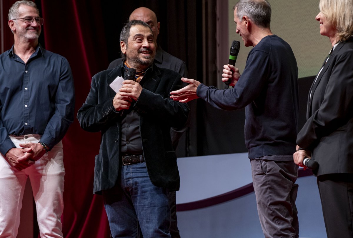 Taking the floor, Panos H. Koutras thanked the Festival, the General Director, Elise Jalladeau, the Artistic Director, Orestis Andreadakis, as well as the Head of the Greek Program, Eleni Androutsopoulou. “In 1999 we came with the whole team to present The Attack of the Giant Moussaka with the same drive, gusto, and audacity with which we made it. We all thought we had created something great; we weren’t prepared for what was to come. Because we heard a lot of things, both prior and after the screening. That ‘the trash’ arrived, that ‘we have no respect for the Festival,’ that we ‘desecrated a sacred place,’ and much more,” the filmmaker recalled.